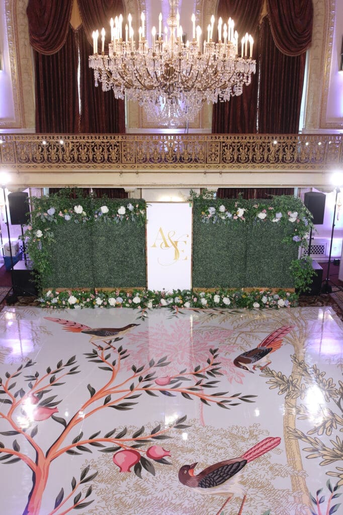 A wedding that felt weightless — layered pastels, painterly florals, and the quiet repetition of bird motifs across print, textile, and form. A ballroom turned garden, soft and sweeping, with color that felt like air and light.